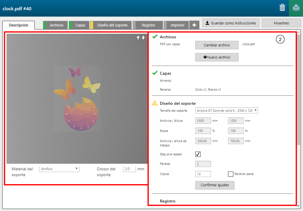 Puede cambiar los ajustes de [Material del soporte] y [Grosor del soporte].