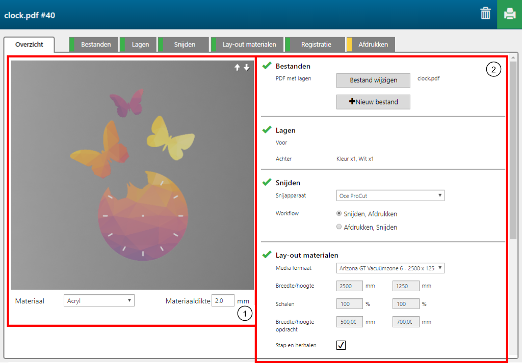 U kunt de instellingen voor [Materiaal] en [Materiaaldikte] wijzigen.
