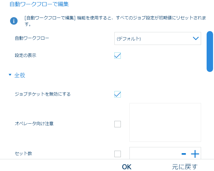 [自動ワークフローで編集] 機能により、すべてのジョブ設定は初期値にリセットされます。