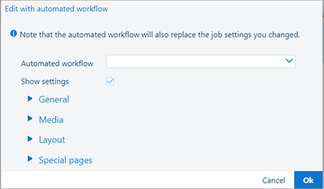 Als u de oorspronkelijke opdrachtinstellingen wilt herstellen, laat u de vervolgkeuzelijst [Geautomatiseerde workflow] leeg en drukt u op [OK].