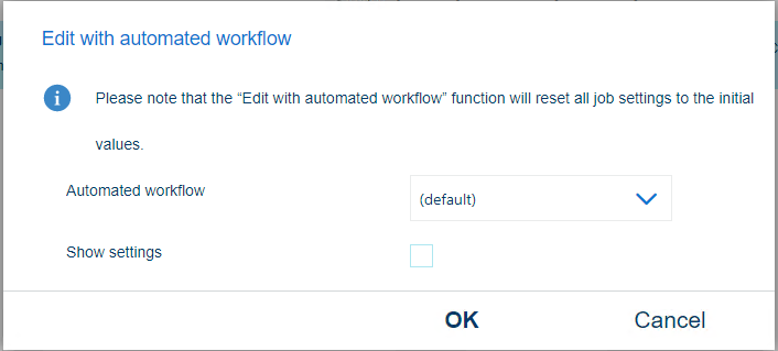 Met de functie [Bewerken met geautomatiseerde workflow] worden de oorspronkelijke waarden voor alle opdrachtinstellingen teruggezet.