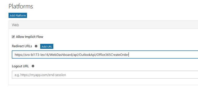 Rulla till avsnittet Plattformar och klistra in [Styr om URL] i Omdirigerings-URL:er.