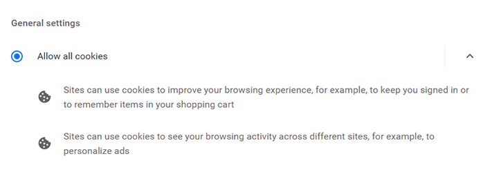 Rul ned, og vælg Tillad alle cookies