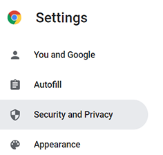 Wählen Sie im linken Menü die Option Sicherheit und Datenschutz aus.