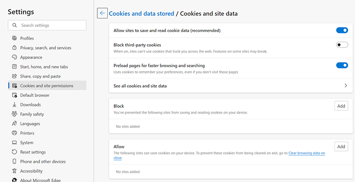 Deaktivieren Sie die Einstellung Alle Cookies blockieren