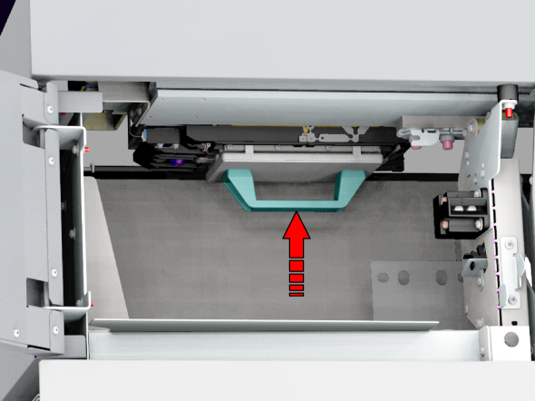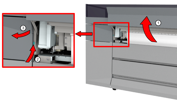 Velmi zlehka zatlačte a zvedněte vozík tiskové hlavy. Pokud přitlačíte velkou silou, poškodíte tiskové hlavy a vozík.