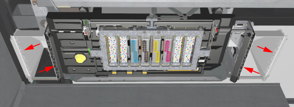 Během používání tiskárny se může na okrajích antireflexních proužků a zrcadel nosiče tiskové hlavy nahromadit prach a vlákna z médií. Pokud se tato vlákna během tisku dotknou povrchu papíru, mohou otřít nevytvrzený inkoust a způsobit problémy s kvalitou tisku.