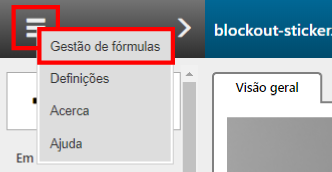 Clique no botão [Menu] e clique em [Gestão de fórmulas].