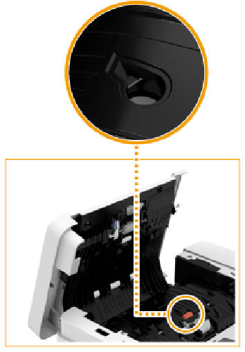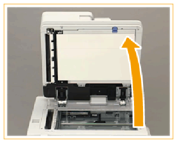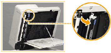 Pull the lever at the underside of the document scan cover to open the document feed scanning area. |