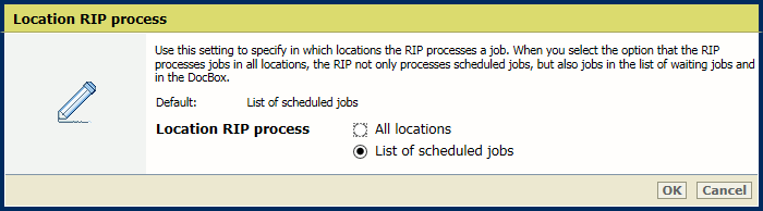 [Print from USB] settingUse the [Location RIP process] setting to indicate where the RIP processes jobs when they arrive in the print queue.
