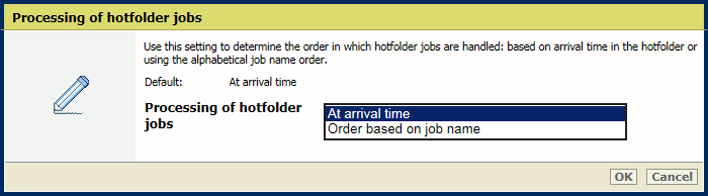 [Subset size for error recovery] settingThe system administrator can change the processing order of hotfolder jobs.