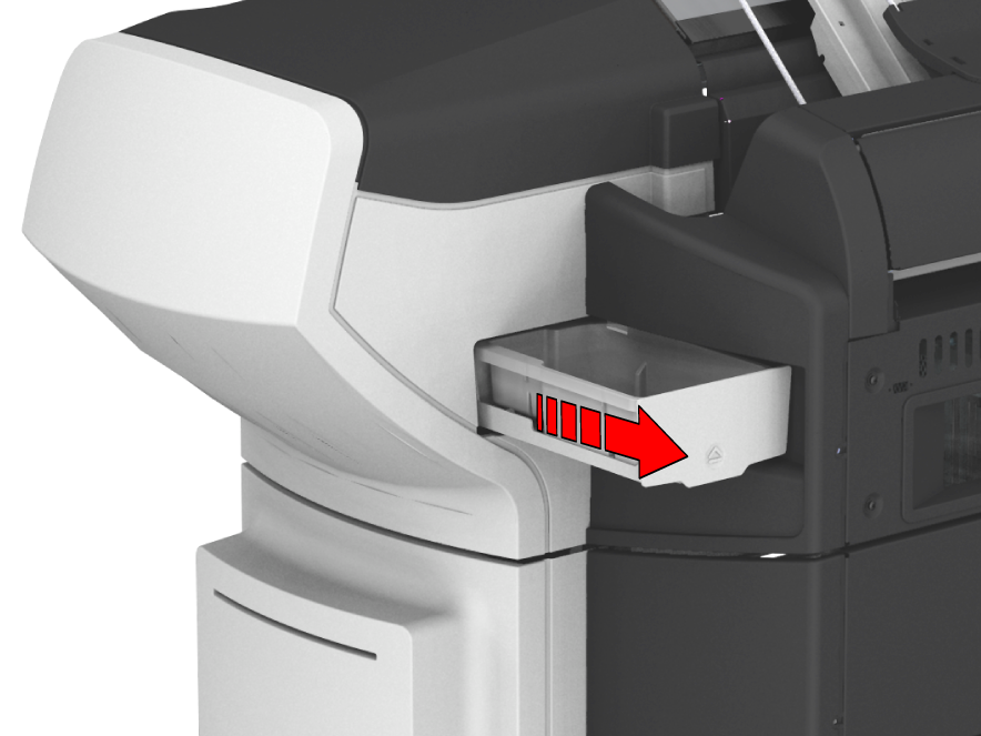 A gaveta do tabuleiro de manutenção está localizada na parte posterior da impressora. Quando a impressora inicia, é necessário algum toner para os dispositivos de imagem otimizarem a qualidade de impressão. Isto é feito uma denominada sequência de pressão, impulso, limpeza. O toner usado para atingir o estado "Preparada para impressão" é recolhido no tabuleiro de manutenção. Durante o dia este processo é repetido algumas vezes para manter os dispositivos de imagem na melhor condição. |