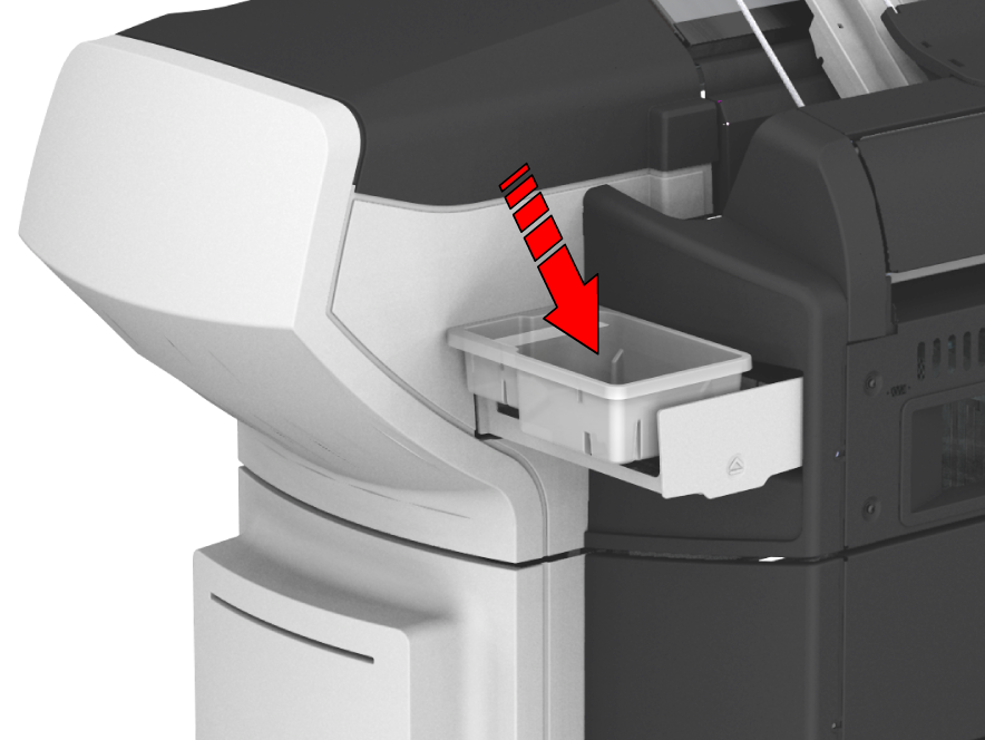 当用户面板显示请求消息时,替换维修盒。维护盒是墨粉盒的包装材料。有关详细信息,请参阅替换墨粉盒。