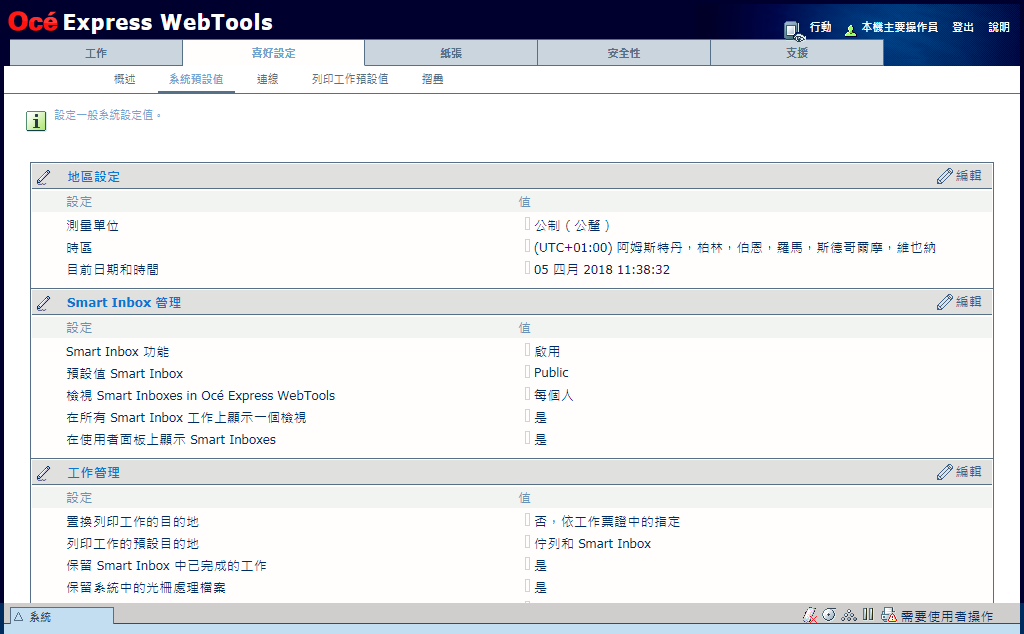 [喜好設定] - [系統預設值] 設定讓您決定系統設定和工作流程相關設定。