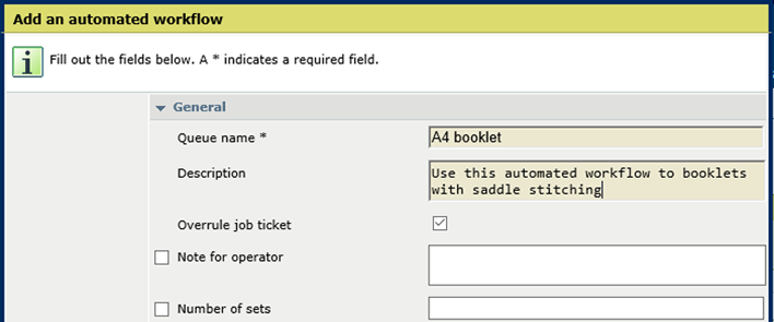 Maak een printer- of afwerkingsinstructie voor de operator. |