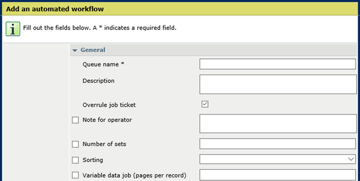 As definições de trabalho configuradas noutros locais são ignoradas por defeito para assegurar que só se utilizam as definições de fluxo de trabalho automático.