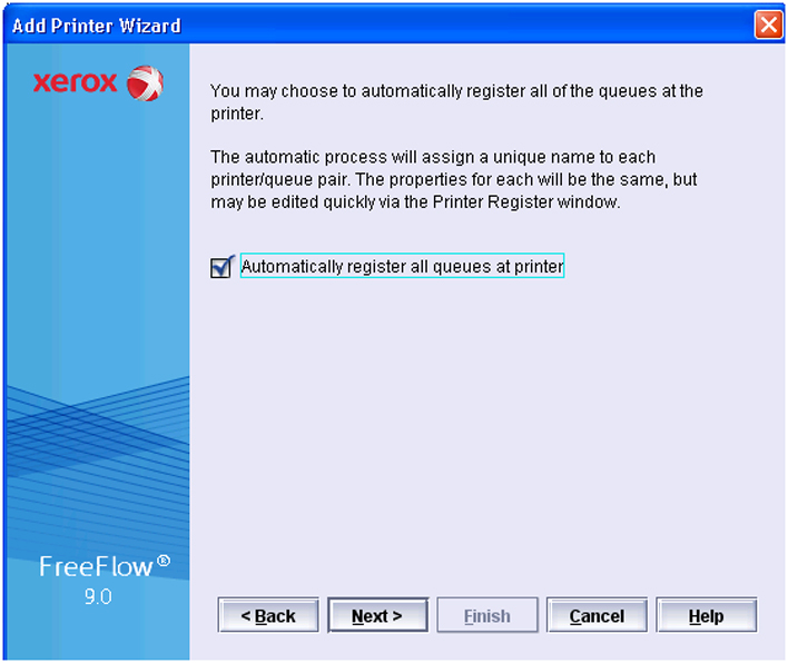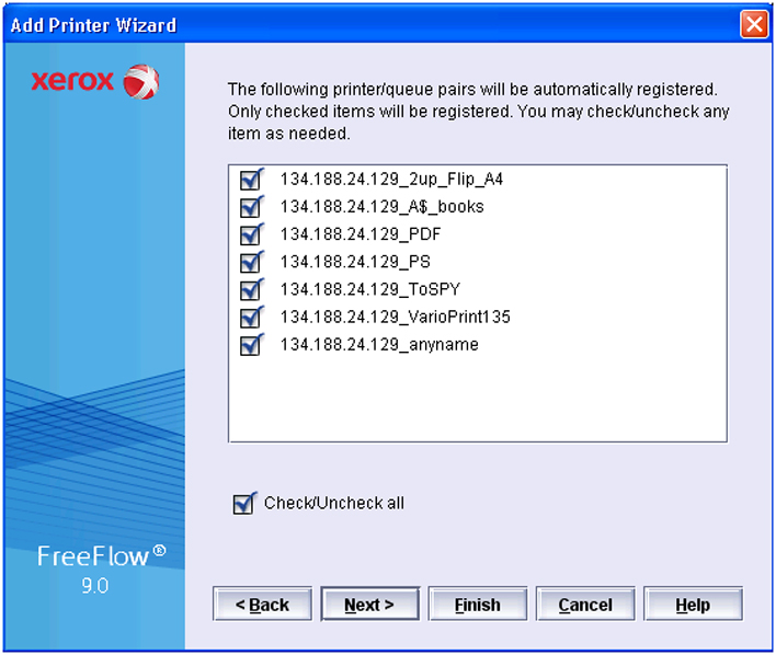 Before you can send the print jobs from the FreeFlow Document Scan and Makeready application to the imagePRESS V1350, you have to add the printer to the list of printers.