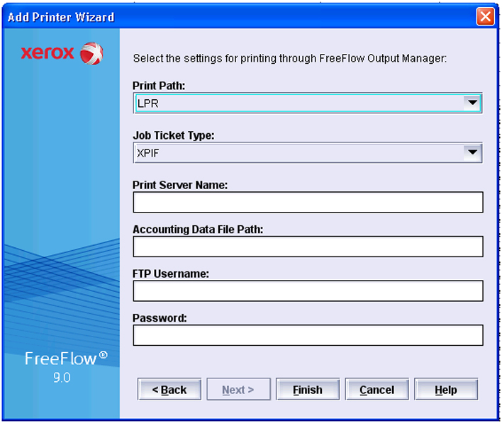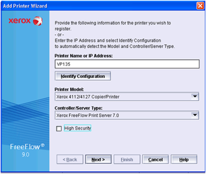 Define "Xerox Freeflow Print Server 7.0" for option "Controller/Server Type". |