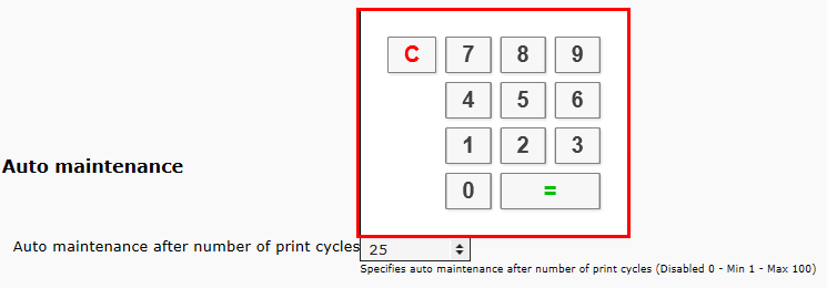 Automatické plánovanie údržby sa spustí po 1-100 tlačových cykloch |