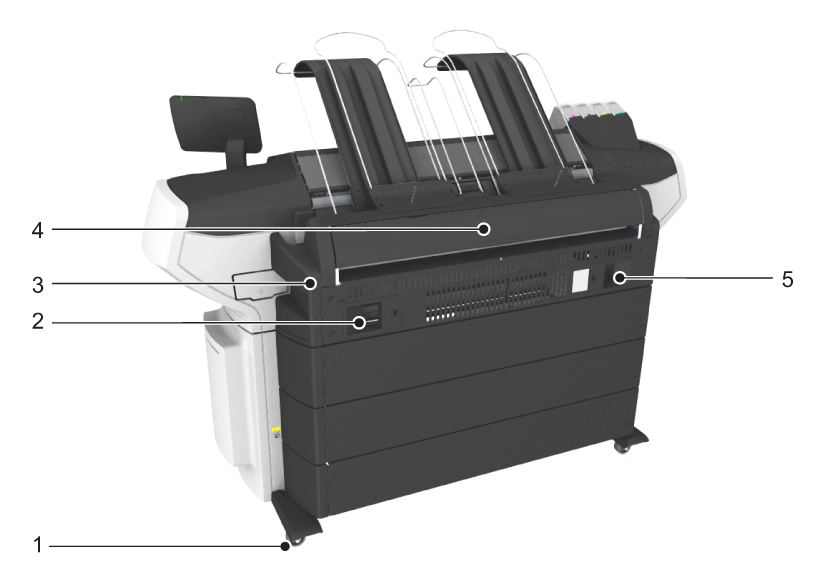 Włącz lub wyłącz zasilanie główne. Powyżej wyłącznika drukarki na naklejce znajduje się numer seryjny drukarki. |