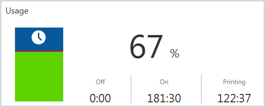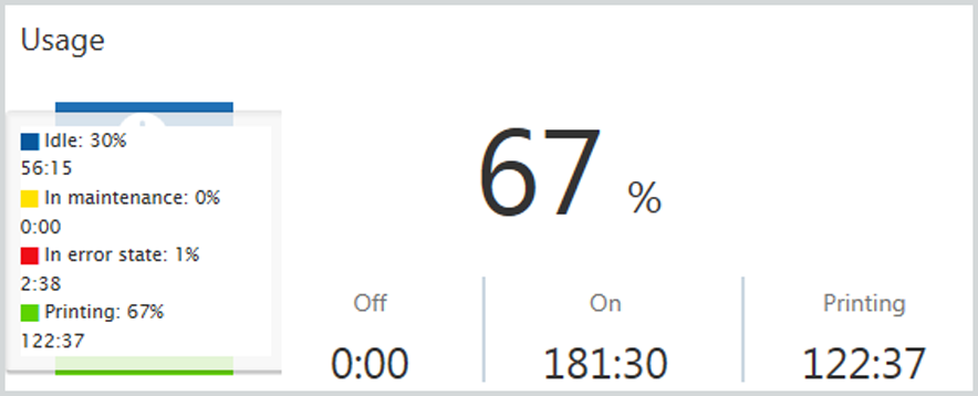 Procentdel med udskrivning er den relative tid, printeren udskrev i, sammenlignet med den tid, hvor printeren var tændt, i den valgte periode.