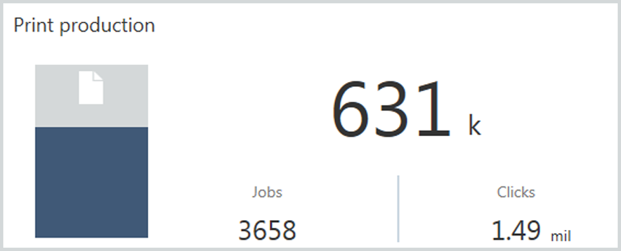 Mængden i [Udskriftsproduktion] afspejler antallet af ark (under 1000) eller pr. 1000 ark (over 1000), der er produceret i den valgte periode.