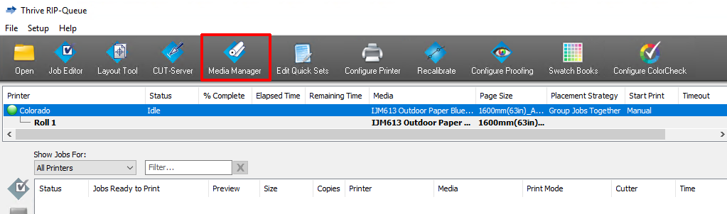 Ve frontě softwaru RIP můžete vidět, že profily médií jsou nainstalovány a lze je použít.