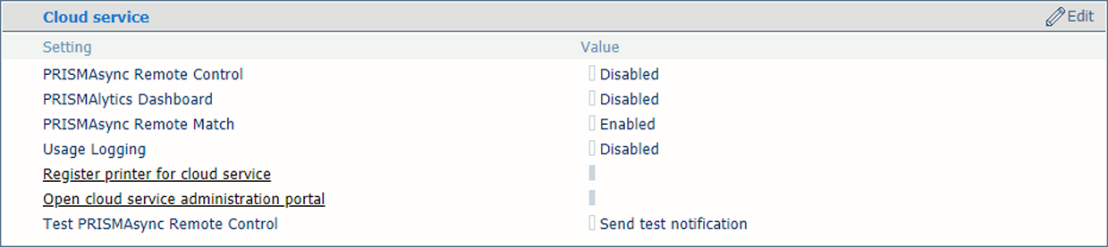 [Åbn portal til administration af skytjeneste] -indstilling i [Skytjeneste] -gruppeBrug hjælpefunktionen eller brugervejledningen i PRISMAsync Remote Match til at få flere oplysninger.
