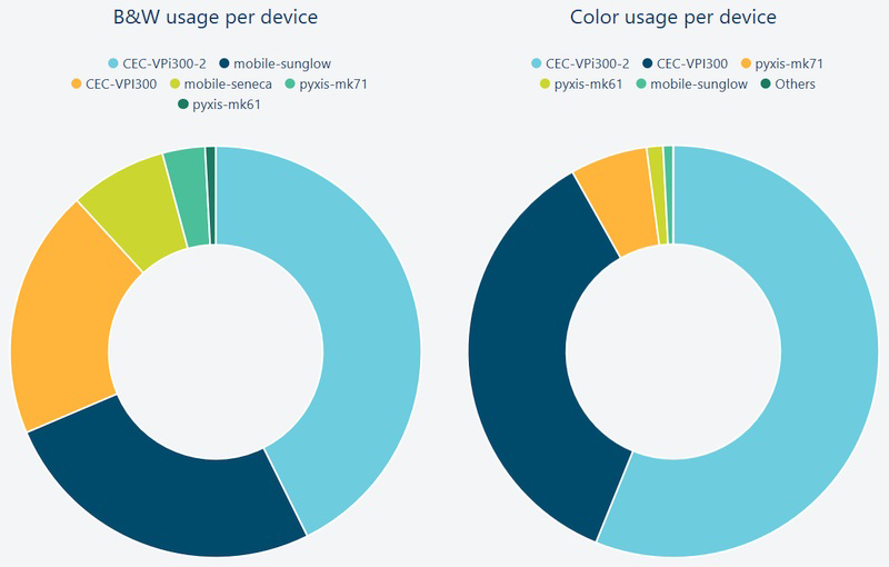 Ez a jelentés egy adott időszakban az összes színes nyomat számát jeleníti meg eszközönkénti bontásban.