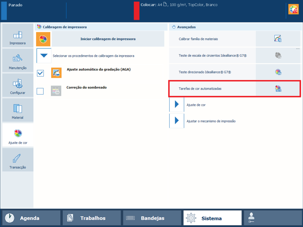 O conselho é executar sempre a calibragem do ajuste de gradação automático nas tarefas de cor automatizadas.