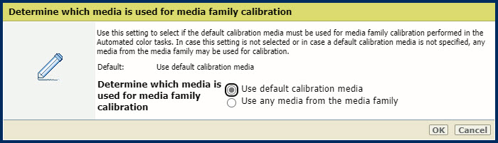 Utilize a definição [Determinar quais as famílias de materiais a calibrar] para definir os procedimentos de calibragem da família de materiais incluídos nas tarefas de cor automatizadas.