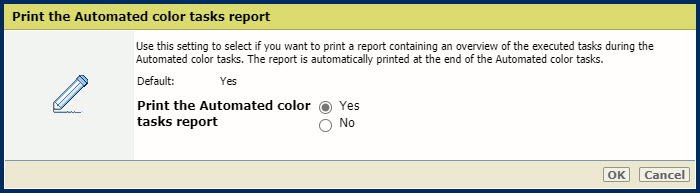 [Imprimir o relatório de tarefas de cor automatizadas] definiçãoTambém pode descarregar um relatório detalhado das tarefas de cor automatizadas executadas no Settings Editor: .