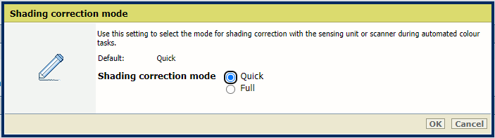 Editar família de materiaisUtilize a definição [Modo de correção de sombreado] para selecionar o modo de correção do sombreado durante as tarefas de cores automatizadas.