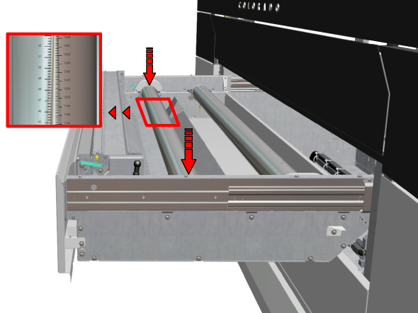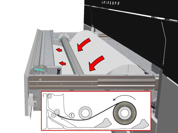 ロックテンションバーと組み合わせることでのみ、内側への印刷を使用することをお勧めします。 ロックテンションバーで印刷および巻き取り を参照してください。