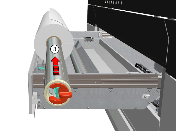 用紙シャフトを新しいロール紙のコア側の中にスライドさせます(3)。