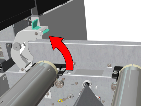 この設定は、用紙が割り当てられている限り保持されます。有効にした場合、システムは用紙を出力位置に送ります。次に、トップ カバーを開いて用紙をガイドします。トップ カバーを閉じると、用紙はクランプに送られます。トップ カバーを開き、用紙を再度ガイドします。これらの作業が完了すると、印刷が開始されます。