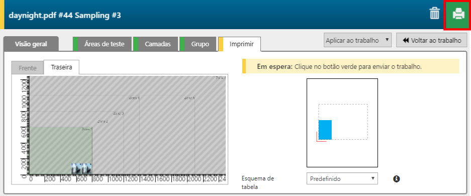 Depois de ter selecionado as áreas de teste (consulte Selecionar as áreas de teste) pode imprimir as amostras.