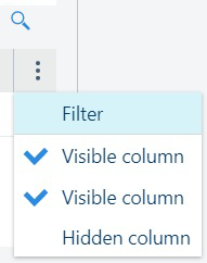 . Dans ce menu, vous pouvez indiquer les colonnes à afficher dans le tableau. L'ordre dans lequel ce menu affiche les en-têtes de colonne ne change pas. Si vous sélectionnez le [Filtrer], chaque en-tête de colonne recevra une zone de saisie pour filtrer le contenu des valeurs de cette colonne uniquement.