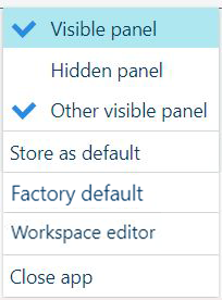 Menu de contexto do painel com o editor de espaço de trabalhoCada aplicação autónoma pode ativar funcionalidades adicionais para a interface do utilizador da tabela: