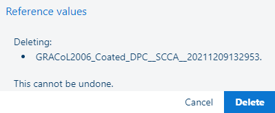 Slet referenceværdisættet. Denne handling kan ikke fortrydes. Referenceværdisættet kan kun slettes, hvis det ikke bruges i en testspecifikation. Du kan ændre værdien i beskrivelsesfeltet. Elementerne for [Fabriksstandard] kan ikke slettes eller redigeres. ![]() Hvis du er sikker på, at du vil slette referenceværdisættet, skal du klikke på knappen [Slet]. |