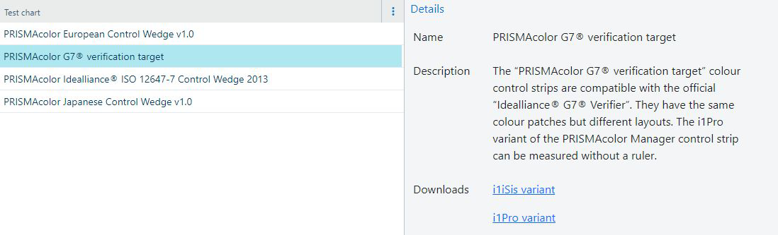 Et antal generiske testdiagrammer findes på denne liste sammen med en kort beskrivelse og links til PDF-filerne med farvekontroldiagrammer for de understøttede scanningsenheder.
