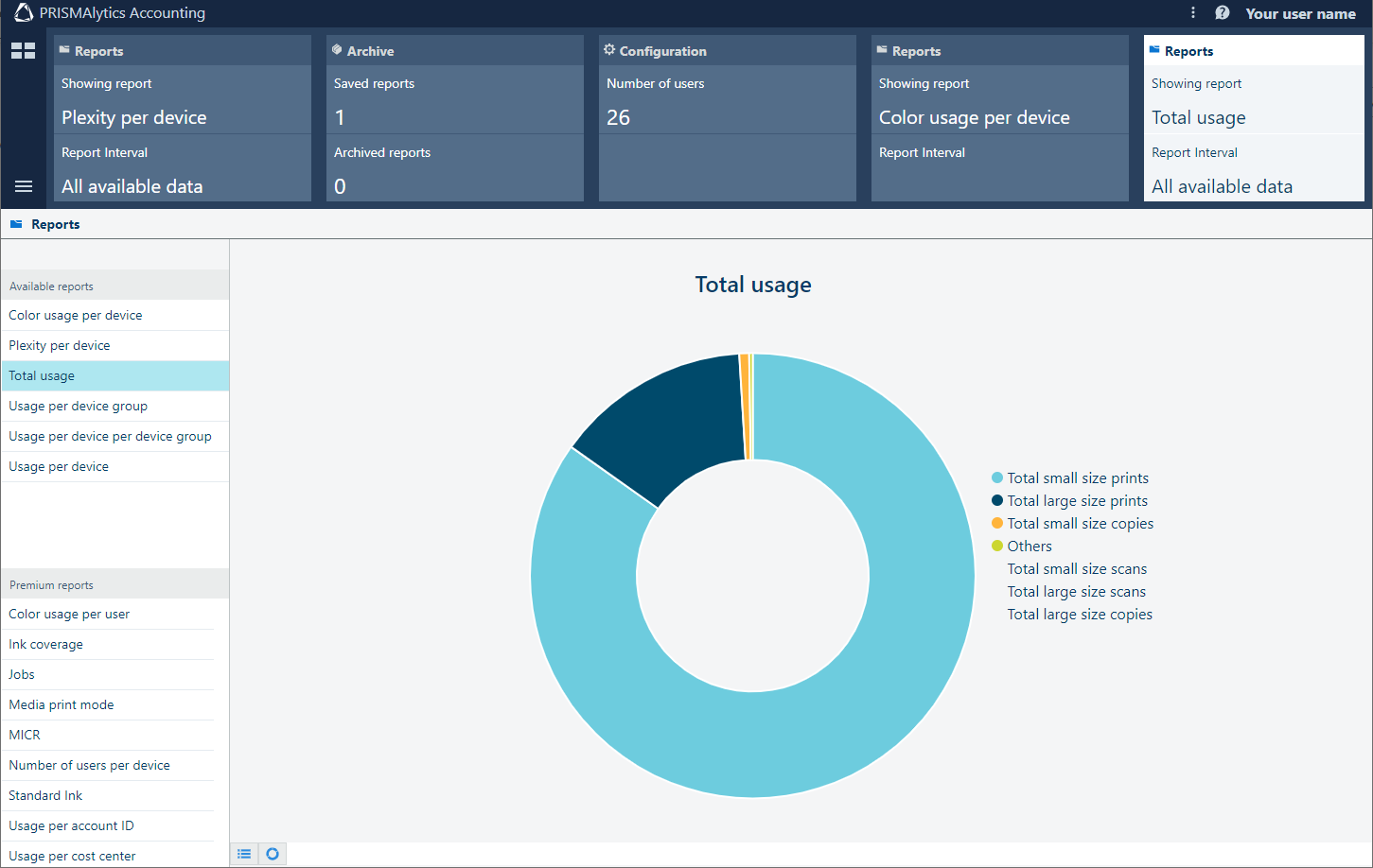 PRISMAlytics Accounting är ett enkelt och säkert molnbaserat hanteringsinformationsverktyg som tillhandahåller toppmodern kostnadsavgift för PRISMAsync-drivna produktionsenheter. Den kan samla in redovisningsinformation från PRISMAsync-driven enheter och presentera denna information i tydliga, standardrapporter.