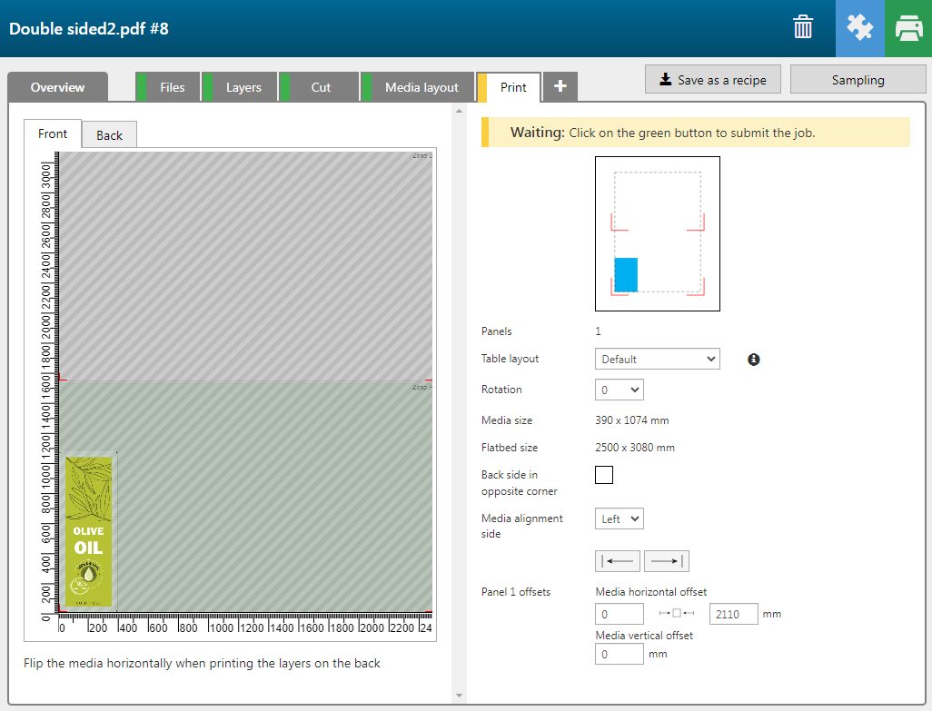 Aktivieren Sie dieses Kontrollkästchen, wenn Sie in zwei benutzerdefinierten Bereichen auf dem Tisch drucken möchten. Diese Option ist natürlich nur verfügbar, wenn die Anzahl der Kopien größer als 1 ist. |