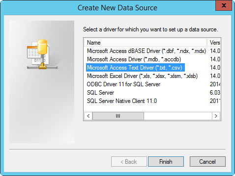 Sélectionnez « Pilote texte Microsoft (*.txt ; *.csv) » et cliquez sur « Terminer ».