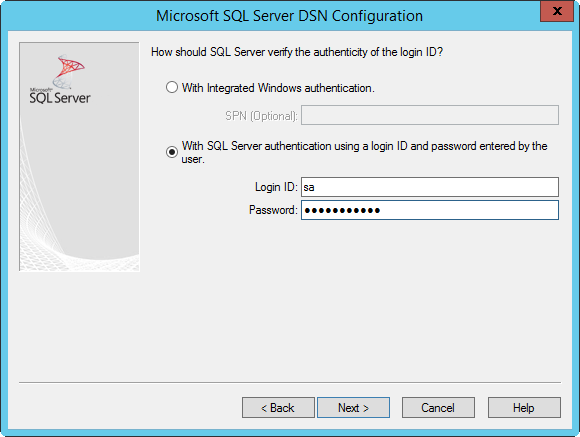 En cas d’authentification Windows intégrée, quittez l’option « SPN (en option) » vide :