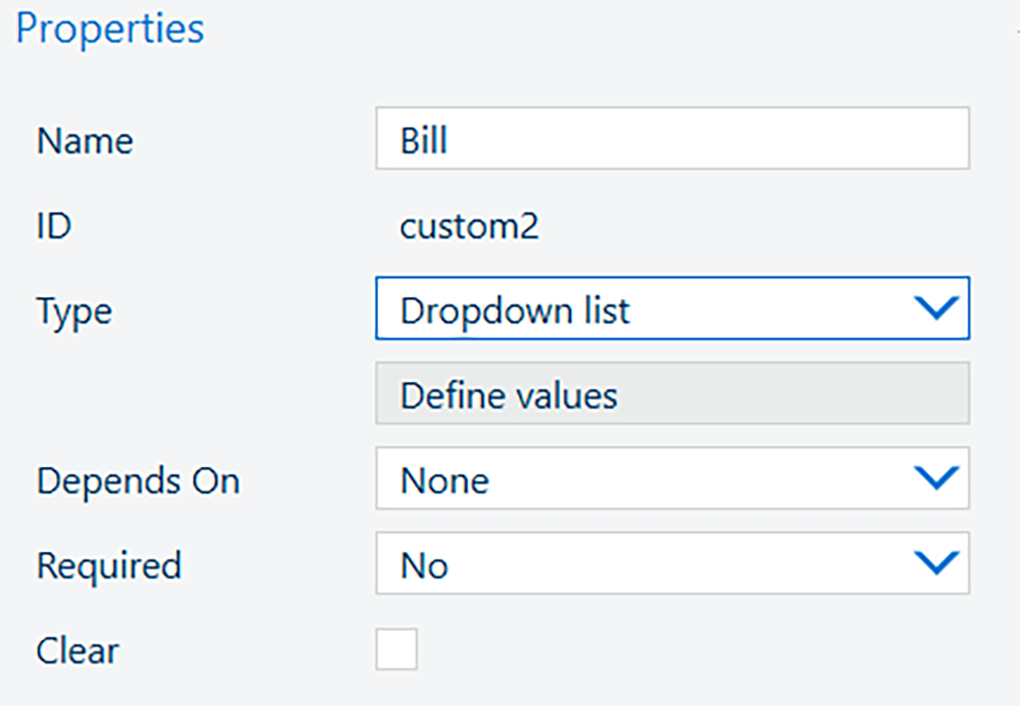 Em [Tipo], selecione [Lista suspensa] e, em seguida, selecione [Definir valores].