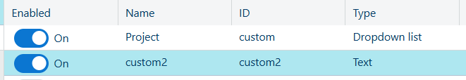 初期状態では、すべてのカスタムフィールドは [オフ] に設定されています
