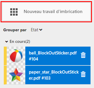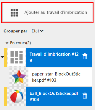 Vous pouvez uniquement imbriquer des travaux imprimés sur la même imprimante et coupés par le même dispositif de coupe.