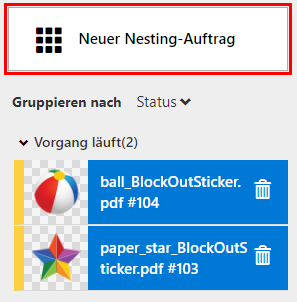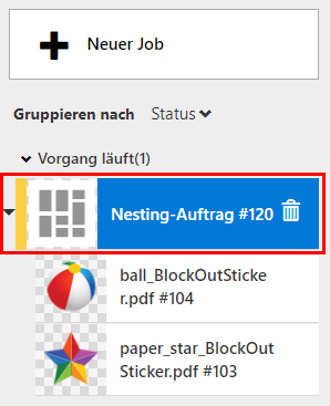 Die Schaltfläche [Neuer Job] ändert sich in [Neuer Nesting-Auftrag].