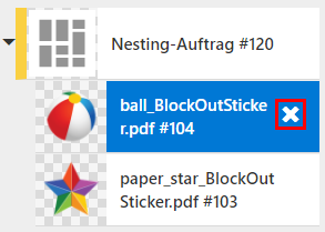 1. Wählen Sie den Auftrag aus, den Sie aus dem Nesting-Auftrag entfernen möchten.